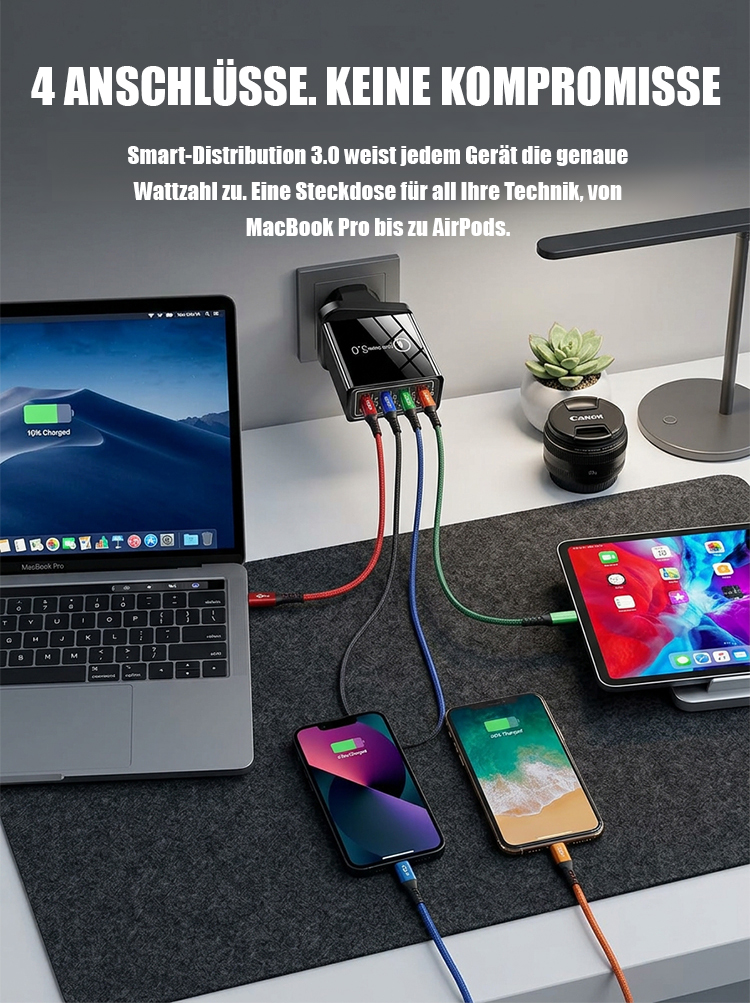 【Verbessern Sie die Akkulaufzeit Ihres Handys】Vierfacher Reise-Ladegerät