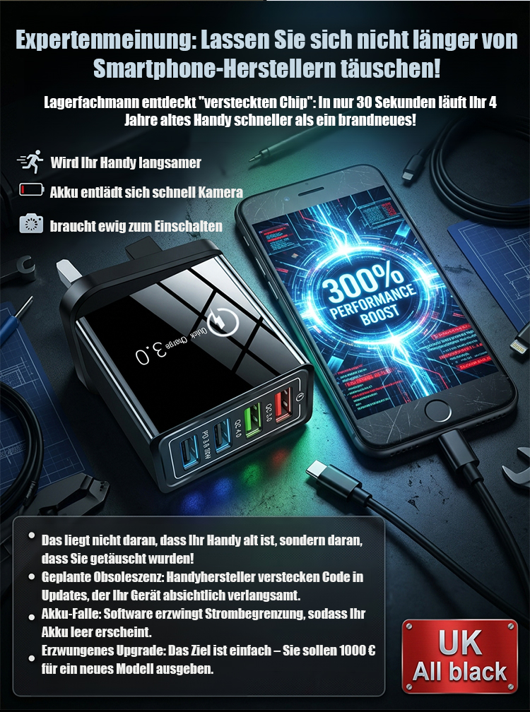 🚫 Schluss mit geplanten Defekten! Unser Power Mate umgeht den geheimen „Kill-Switch"-Chip 📱✨. Reparieren Sie Ihre Batterie von 34% auf 85%+ in nur 48h 🔋⬆️. Laden Sie Ihr Handy in 5 Min voll (0-100%) ohne Hitze ⚡❄️. Über 1 Mio. Deutsche sparen tausende Euro 💰. Jetzt 50% Rabatt + 60 Tage Garantie! 🎁 Beeilen Sie sich, bevor es verboten wird! 🏃♂️🇩🇪